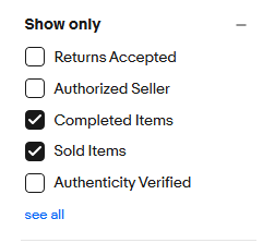 Mutta jatketaan tällä PSA 10:llä. Miten tuo pyyntihinta suhteutuu historialliseen hintaan. eBay:ssä se on hyvin yksinkertaista, valitset filtteriin vain tämän Show only = Completed Items. Tosin kannattaa pistää myös Sold Items, koska muuten listaan tulee myös huutokaupat, joihin ei tullut yhtään tarjousta.